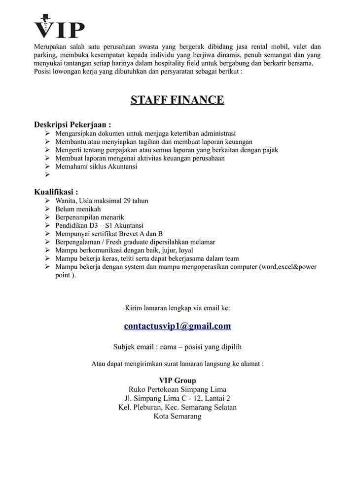 Lowongan Kerja Staff Finance di VIP Group Semarang