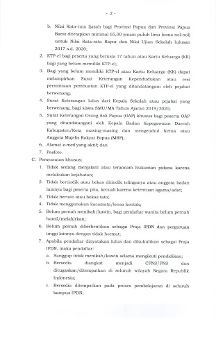3. Nilai Rata-rata Ijazah bagi Provinsi Papua dan Provinsi Papua Barat ditetapkan minimal 65,00 (enam puluh lima koma nol-nol) untuk Nilai Rata-rata Rapor dan Nilai Ujian Sekolah lulusan 2017 s.d. 2020