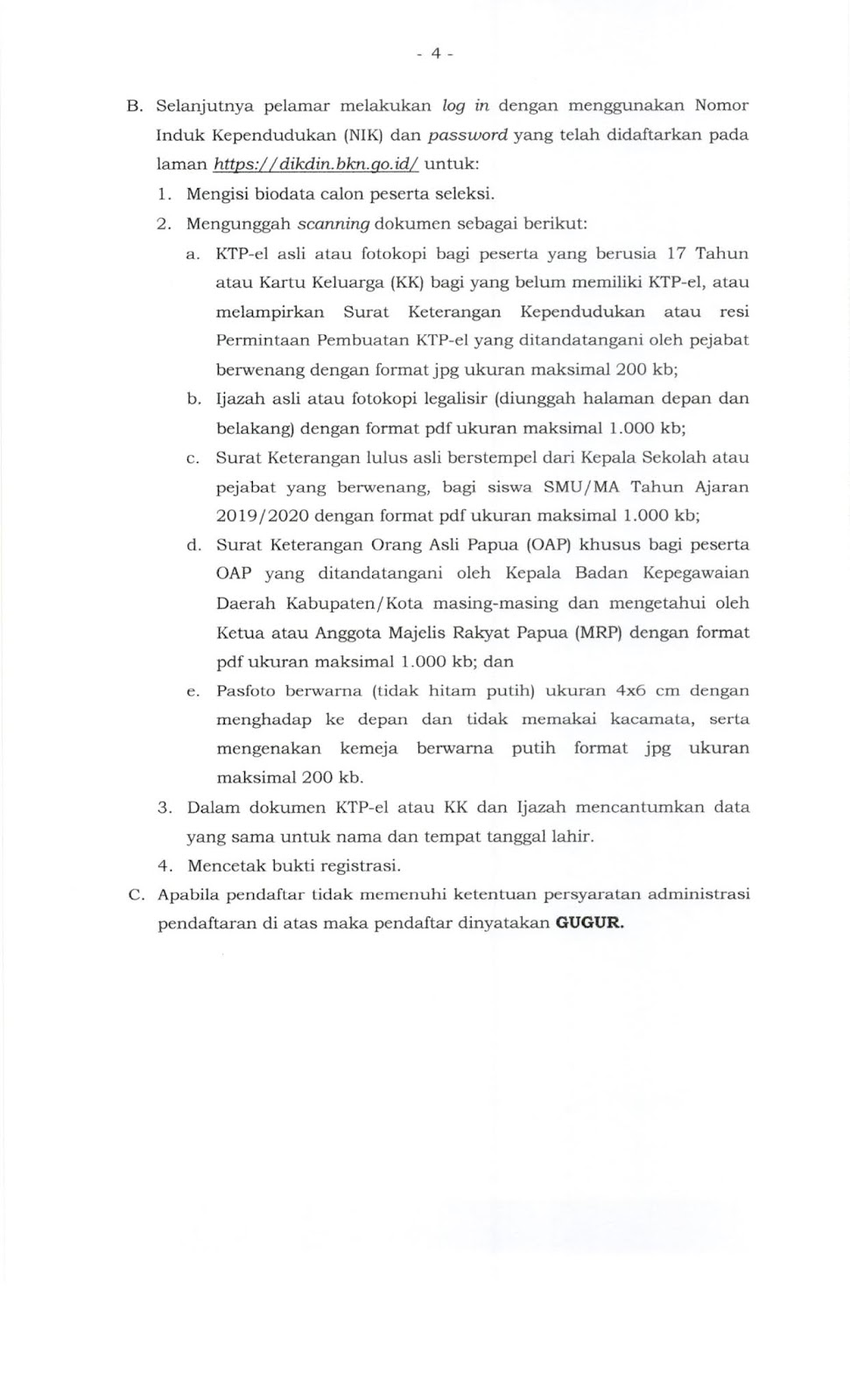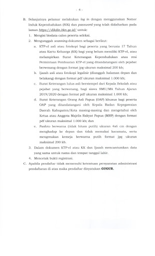 7. Surat Keterangan Orang Asli Papua (OAP) khusus bagi peserta OAP yang ditandatangani oleh Kepala Badan Kepegawaian Daerah Kabupaten/Kota masing-masing dan mengetahui Ketua atau Anggota Majelis Rakyat Papua (MRP)