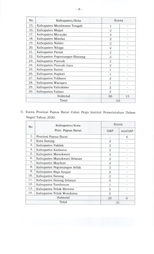 Penerimaan Calon Praja Institut pemerintahan dalam negeri yang diadakan oleh Kementerian Dalam Negeri. Seleksi Penerimaan Calon Praja Institut pemerintahan dalam negeri dilakukan untuk memenuhi kuota di setiap daerah dengan persyaratan minimal yang berpendidikan SMA SMK sederajat.