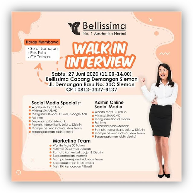 WALK IN INTERVIEW BESOK! Bellissima Sleman