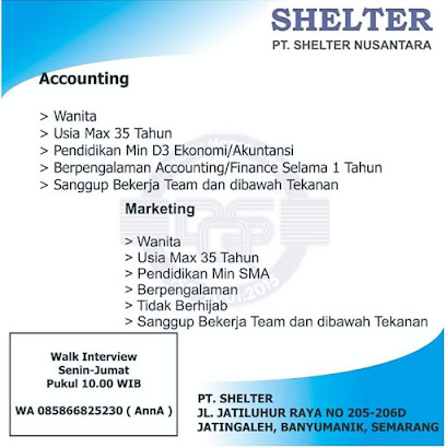 Loker Accounting | Marketing di PT. Shelter Semarang