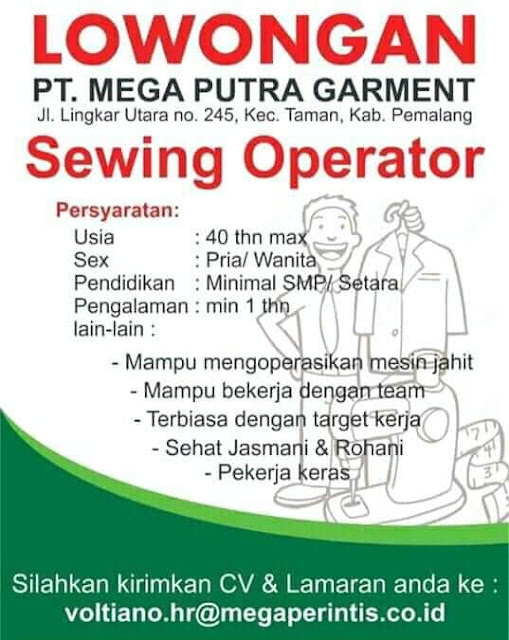 Lowongan Kerja PT. Mega Putra Garment Pemalang