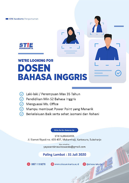 Segera! Lowongan Kerja Dosen Bahasa Inggris STIE Surakarta