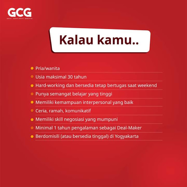 · Minimal 1 tahun pengalaman sebagai Deal maker