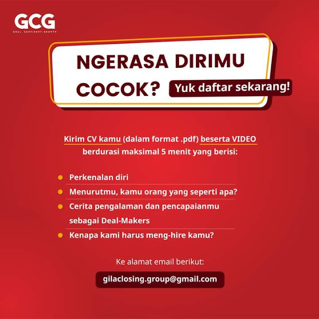 Gila Closing Group (GCG) berada di bawah PT. Najah Kuliner Nusantara, merupakan perusahaan yang bergerak dibidang F&B. Beberapa produk unggulan kami adalah Dawet Kemayu, Lucky Coffee dan Ayam Geprek Abang Ireng yang tersebar di beberapa kota.