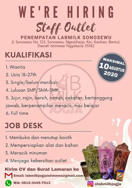 Dibutuhkan Segera - Staff Outlet - Lab Milk Jogja
