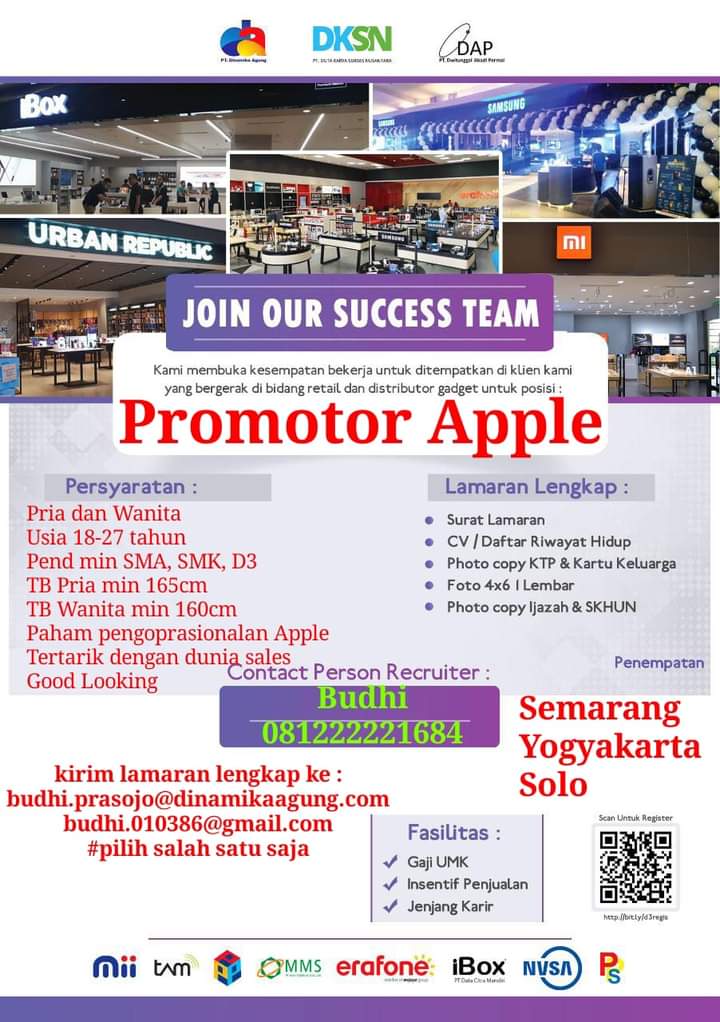 Lowongan Kerja Promotor Apple Yogyakarta, Semarang, Solo