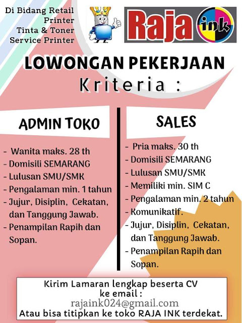 Lowongan Kerja Admin dan Sales di Raja Ink Semarang