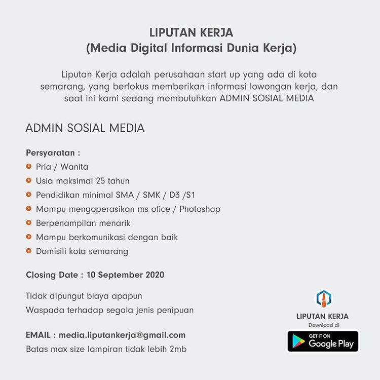 Lowongan Kerja Admin Sosmed Semarang - Liputan Kerja