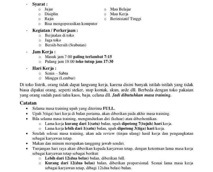Lowongan Kerja Sragen Bulan September 2020 di Toko Listrik Surya Mas
